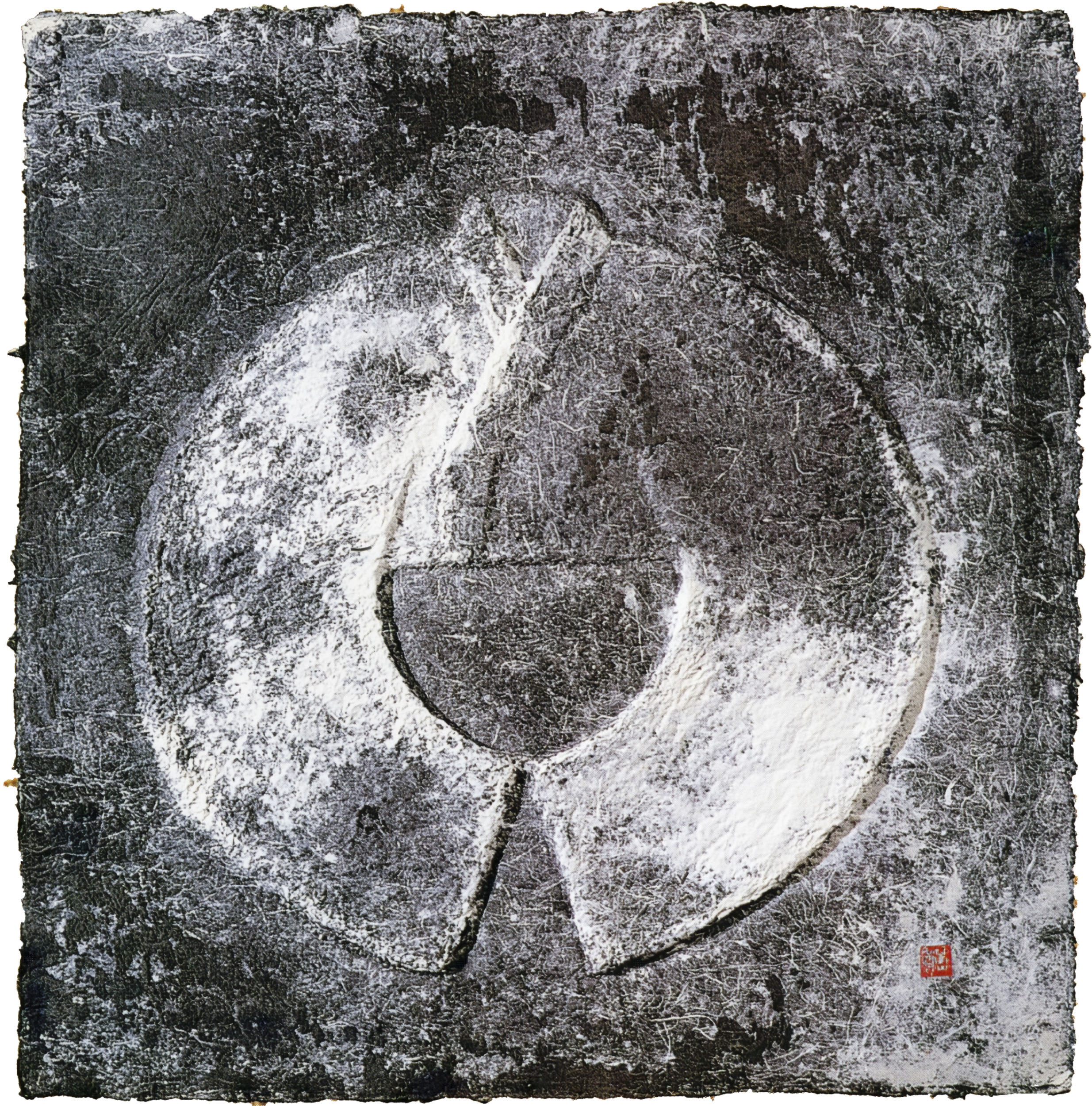 I have always thought about the fundamental love of a mother, and I wanted to express the fact that a mother’s love, like the earth, absorbs and accepts everything and shines brightly like the universe, using Korean mulberry paper.