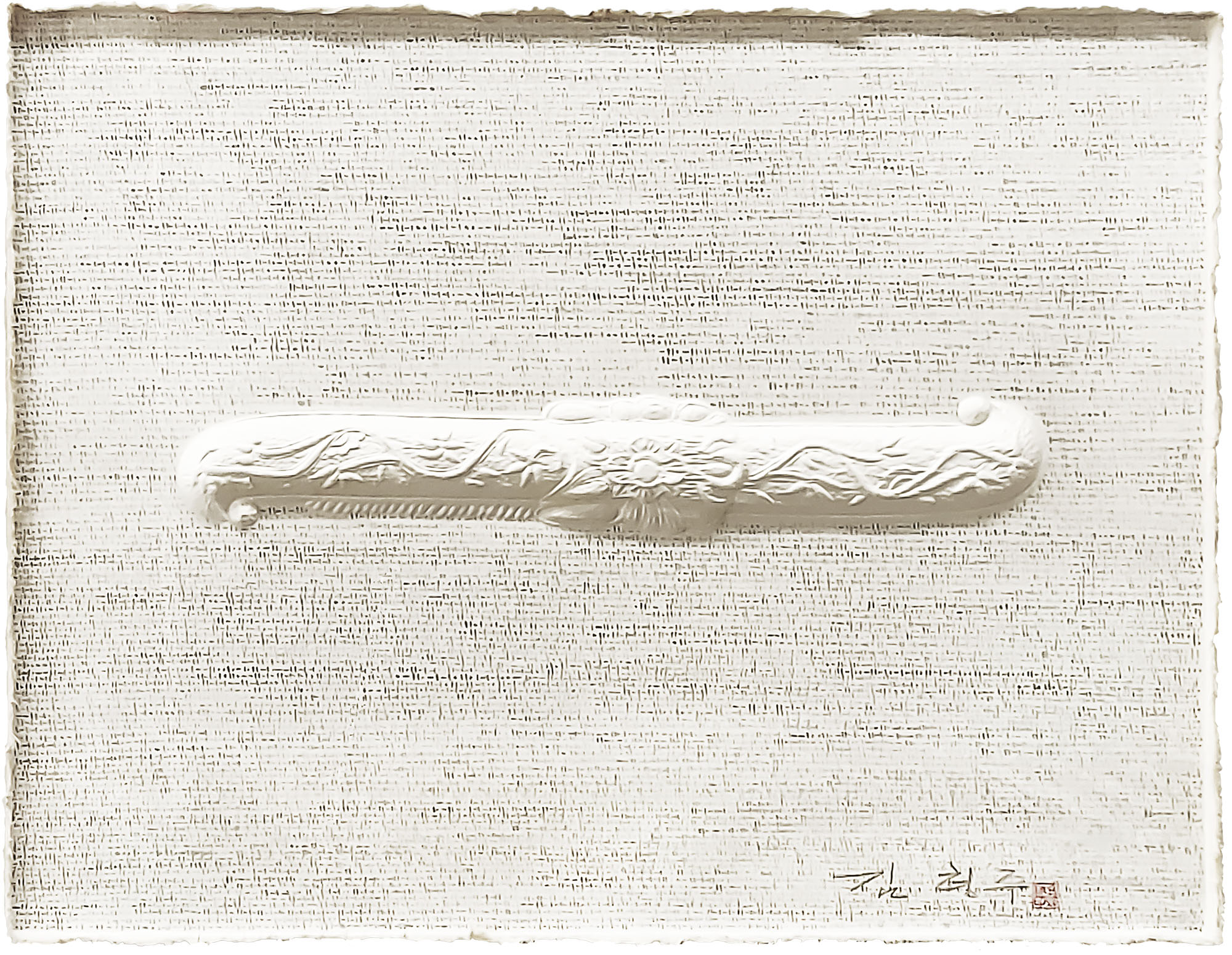 Sometimes, it was also a tool to detect poison or protect oneself in times of emergency. In the past, it was given to daughters as a dowry to wish them luck, and i also has a historical meaning of protection. In order to preserve this spiritual value as a work of art, it was made in relief using mulberry paper